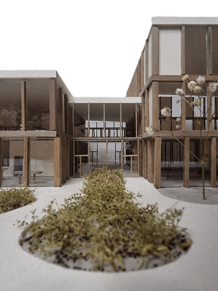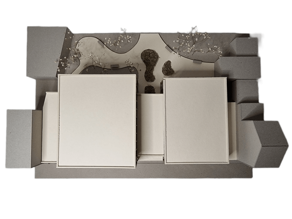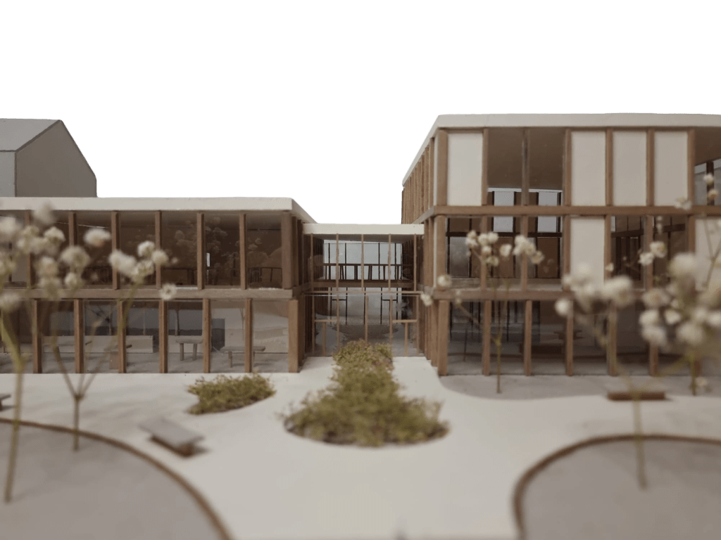 « Inspiré du tissu urbain de Schaerbeek, le centre articule sport, culture et rencontres autour d’une rue intérieure traversante, dans une architecture rythmée et ouverte sur le quartier. »